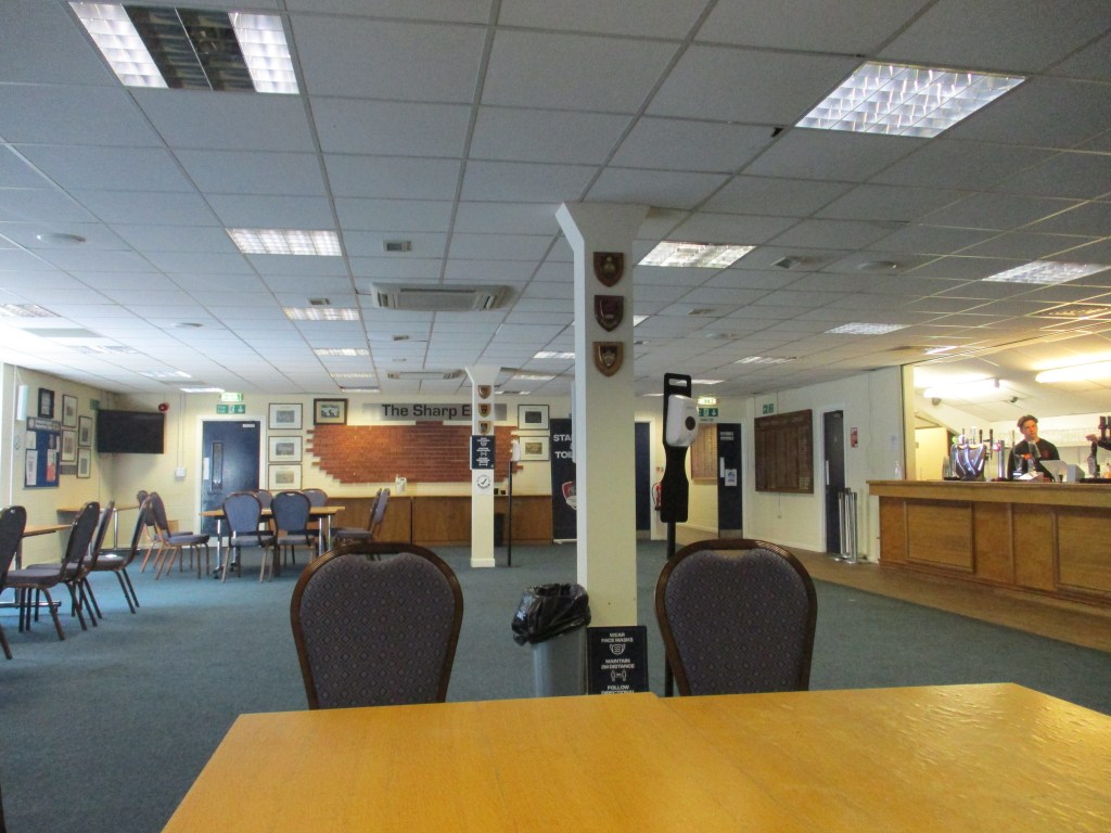 The bar is under the seated stand with the entrance to it being at the far end from the entrance. You can take all drinks outside if you wish and it is card payment only for them. There was some food available to buy at the far end of the bar (burgers, hot dogs, chips) when visited the ground in January 2022 after they hadn’t been any on an earlier visit. There is a Burger King near the station plus some shops/takeaways and a pub on the walk from station to ground and of course there are lots of places to eat and drink in the city centre.