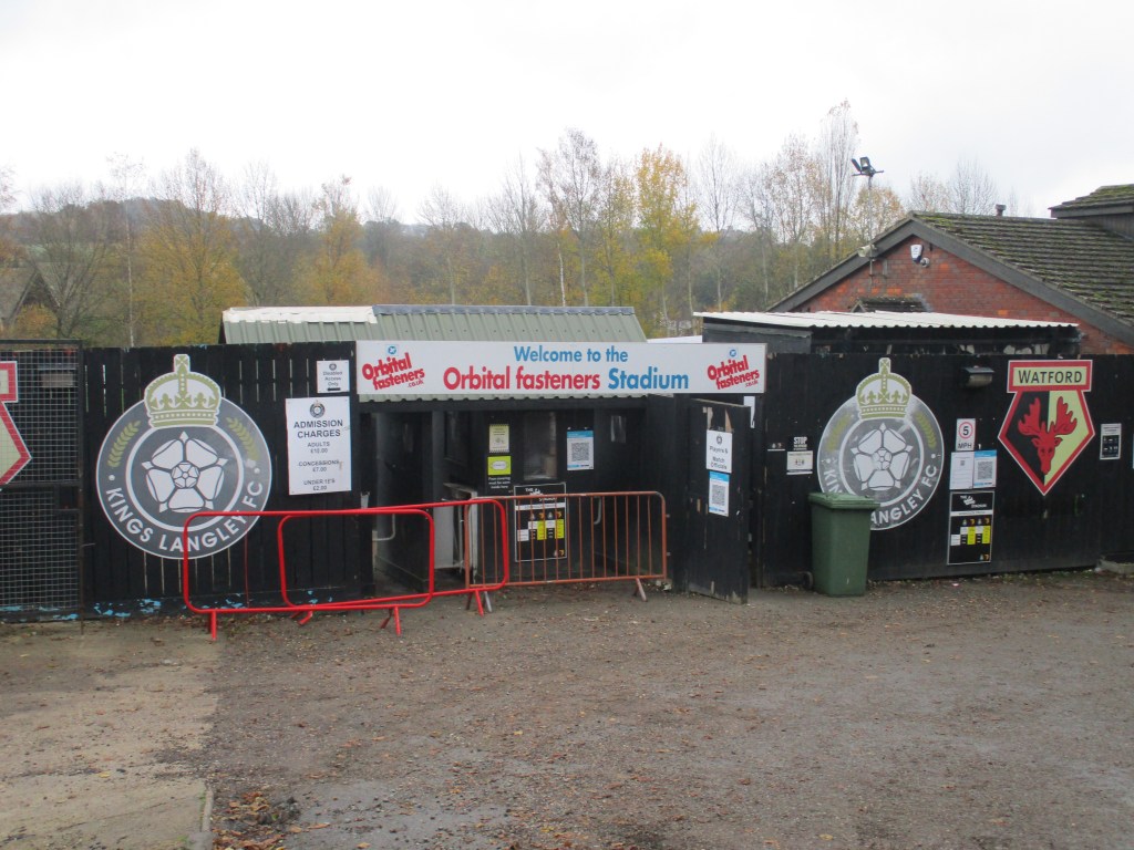 Kings Langley is in Hertfordshire, near junction 20 of the M25 (then up the A4251 and through the village if driving and coming from that way). It is about 20 miles north west of central London, about 5 miles north of Watford and 3 miles south of Hemel Hempstead. The ground opened in 1997 when Kings Langley FC moved there and it has a capacity of 1,900. Watford have played at Kings Langley since 2017.