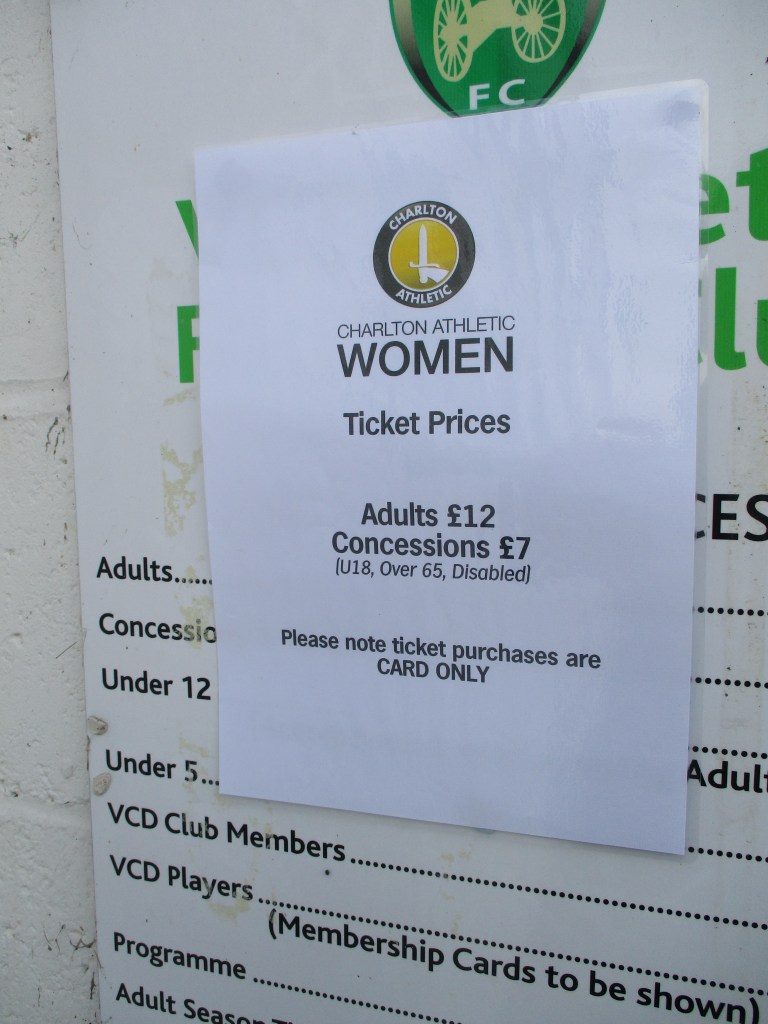 I bought tickets online which cost me £10 (adult price) plus a £1.50 booking fee. I had to register with the club before buying online. The ticket came as an attachment on the confirmation email which I printed off and showed at the turnstile where it was taken from me. You were able to pay on the day at the turnstile, with the prices being £12 for adults and £7 for concessions (U18, Over 65 and disabled) and it is card payment only.