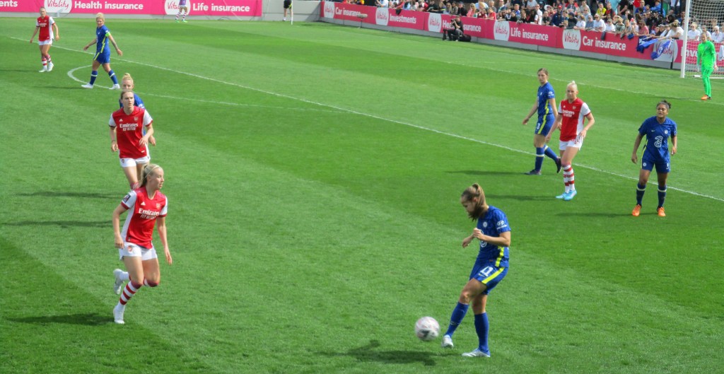 It was actually Arsenal who started the better of the two but they were unable to create any clear chances with Chelsea defending well. Chelsea did slowly start to get into the game but again didn’t create anything that threatened the Arsenal goal. Vivianne Miedema had the first real opportunity of the game for Arsenal in the 20th minute but her powerful shot from the edge of the area went over.