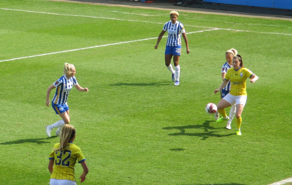 Birmingham took the lead though in the 9th minute when Sarri picked the ball up in her own half and ran through the Brighton defence and finished with a low shot that Megan Walsh got a hand to but not enough to stop the ball from finding the corner of the net.