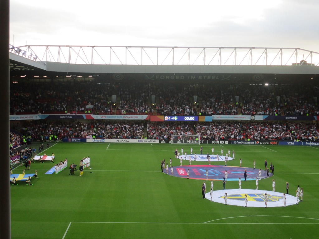 I was sat in the Kop again at Bramall Lane, this time near the back. The leg room was still minimal and there was a lot of standing up during the game when the fans in front of me did the same. Mary Earps made some good saves to deny Sweden before England took the lead when Beth Mead scored. 1-0 at half time but England scored a second just after the break when Lucy Bronze headed in. Another great save by Earps kept the score at 2-0. Russo scored England’s third with a back-heel nutmeg and Fran Kirby completed the scoring as the Lionesses won 4-0 and reached the final.